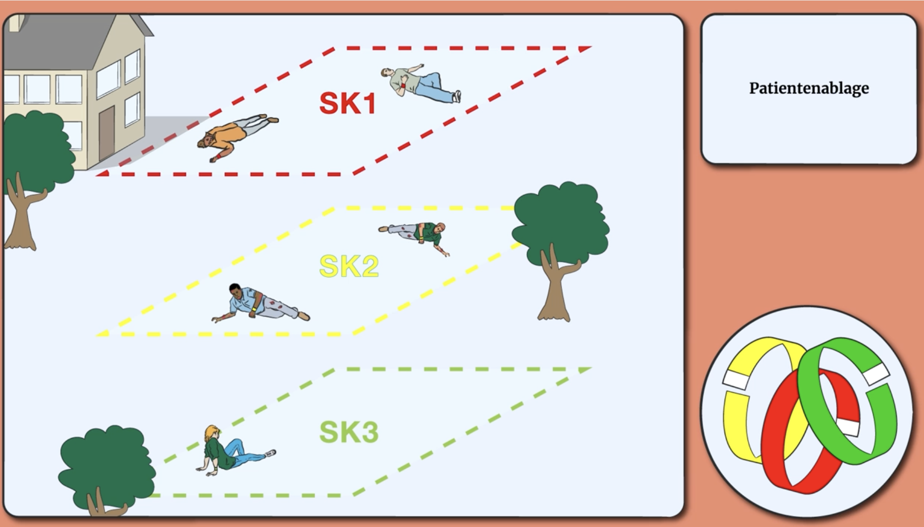 die Ordnung des Raumes herzustellen (Patientenablage, Rettungsmittelhalteplatz, Betreuungsstelle & Bereitstellungsraum)