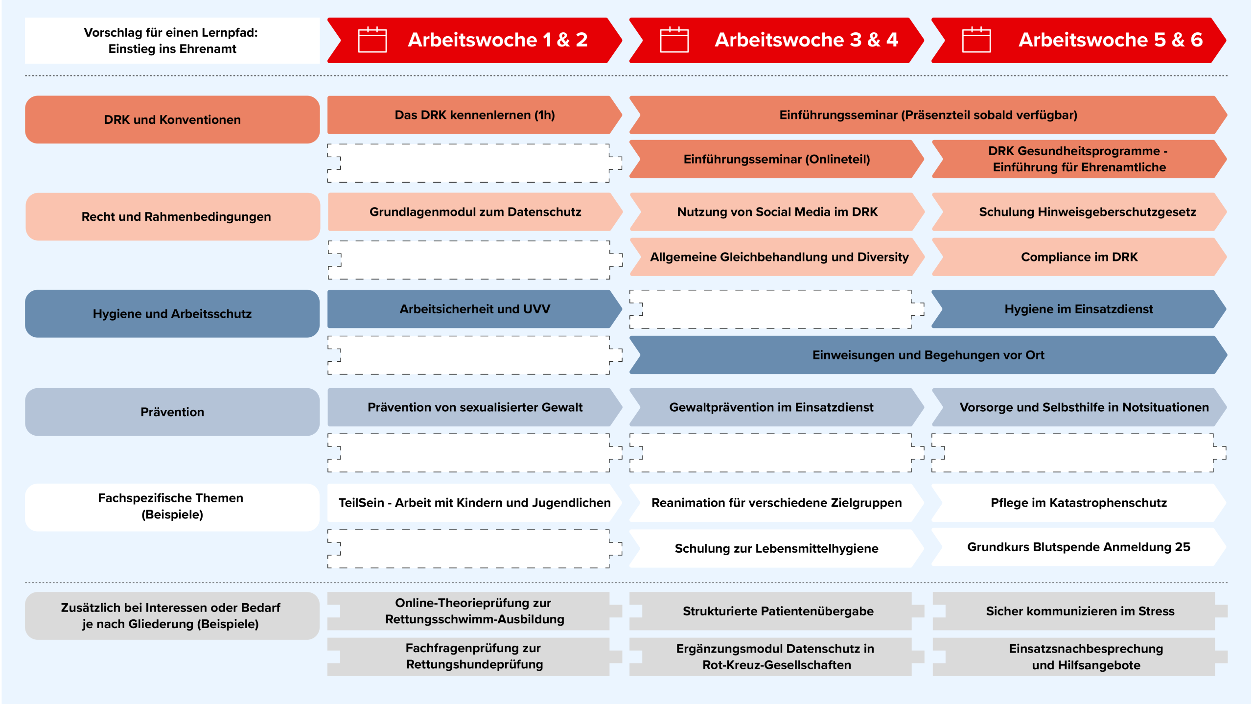 In einigen Online-Kursen besteht die Möglichkeit, einen Evaluationsbogen zu dem Online-Lernangebot auszufüllen und den Kurs zu bewerten. Das abgegebene Feedback ist anonym. Ein Rückschluss auf die Personen, die das Feedback abgegeben haben, ist nicht möglich. Die Auswertung des Feedbacks für statistische Zwecke und um die Qualität des DRK-Lerncampus kontinuierlich weiterzuentwickeln erfolgt ebenfalls anonymisiert.
